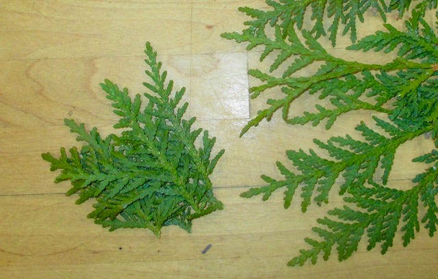 I cut branches along the stream, pinch ends into stacks that match the number of cakes I will assemble.