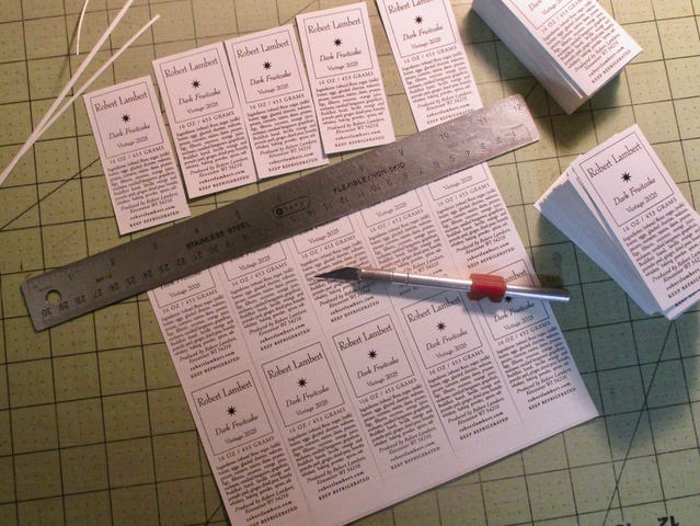 First thing to do, last thing to use. Small runs and frequent changes mean I have never been able to have these printed. I design, print and hand cut them; I have earned a Master’s in exacto-blade.